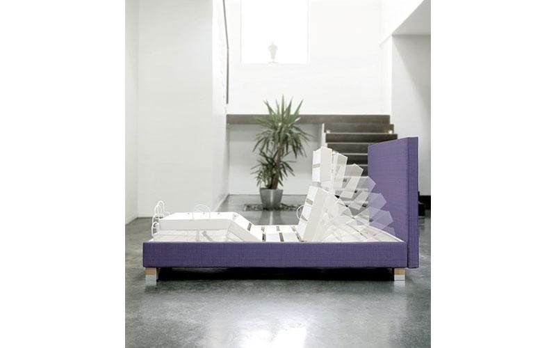 The magic of Trecaflex M5 sommiers with electronic relaxation is a technology that disappears when the bed is not in use. The bed will integrate into your universe and your favorite decoration at that moment. The five joints are driven by reliable and quiet motors. The Radio Wave remote control has blue backlit buttons for convenient viewing even in the dark. An LED system under the bed is operable as nighttime safety lighting. The power lock on the power outlet allows the bed to be used in complete safety.